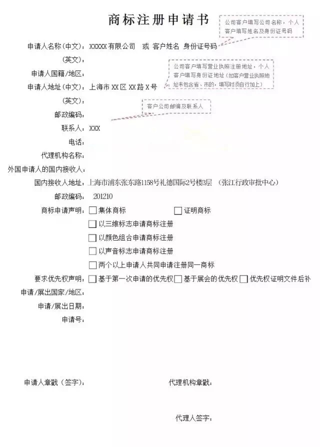 商标注册申请书填写要求